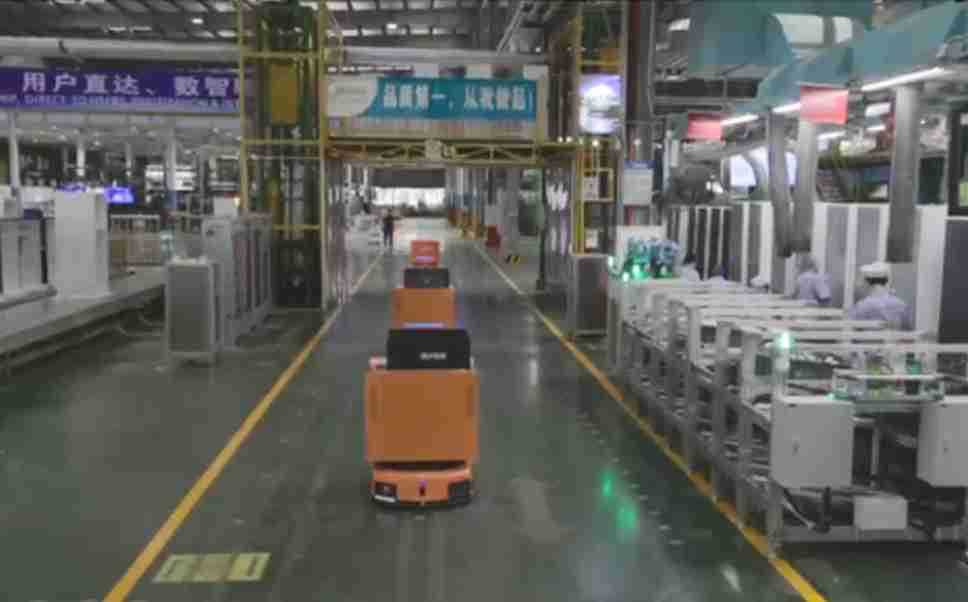 为车载冰箱物流配送打造的智能解决方案,,,,包含产中物流通过潜伏举升AMR搬运至线边,,产后成品物流智能仓储,,,流程包含产中物流智能齐套入库,,,线边安灯叫料AMR智能配送至线边,,成品入库、、、、出库,,,,通过无人堆高车机器人,,,,智能仓储管理替代人工作业管理,,,实现更高存储、、、更高效率、、更具柔性化的解决方案。。。